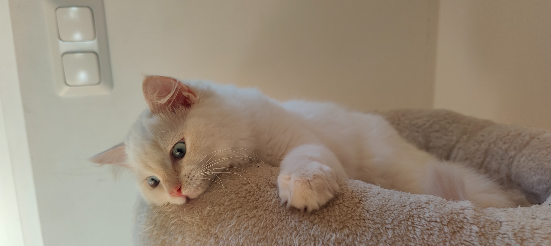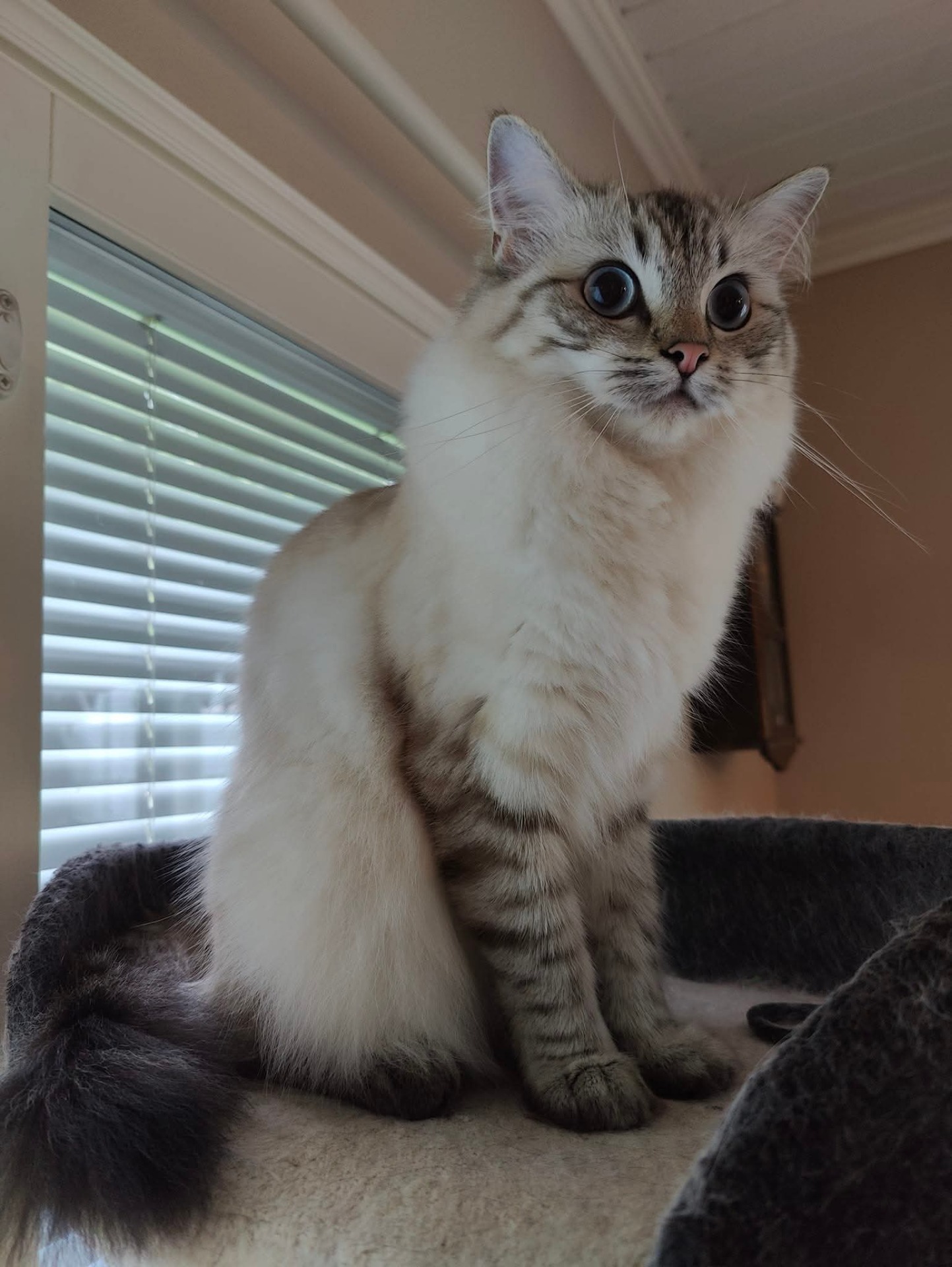 Talvenkukan Aamu-Usva eli Luna on syntynyt 24.7.2024. Väriltään Luna on lilakilpikonnanaamio colourpoint eli RAG j.