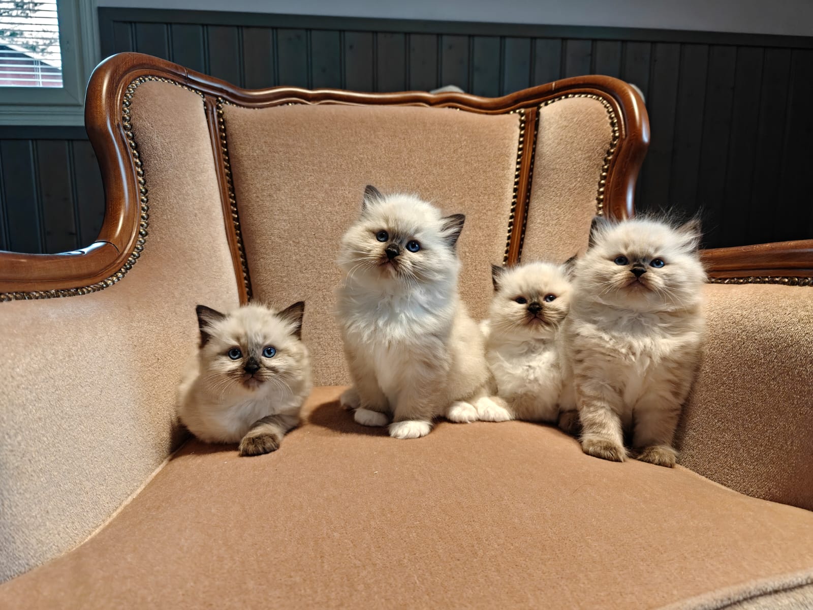 Louhin pennut syntyivät lauantai aamuna 17.5.2025. Pentueessa on kaksi poikaa: punainen colourpoint tabby ja ruskea colourpoint tabby. Kolme tyttöä: sininen colourpoint kilpikonna ja kaksi punaista colourpoint tyttöä.
